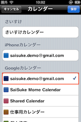 これにより、iPhoneカレンダー(iOSカレンダー)で取得しているカレンダー(Googleカレンダー・MobileMeカレンダー等)をさいすけで利用できます。