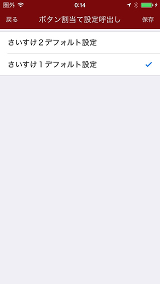 「さいすけ2デフォルト設定」、「さいすけ1デフォルト設定」いずれかのボタン割当て設定の呼び出しを行います。