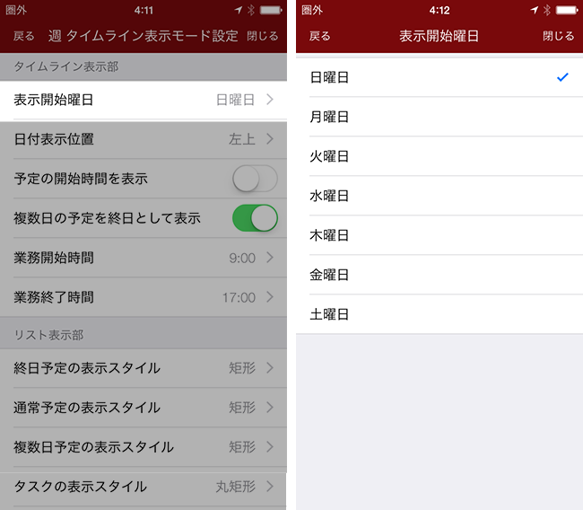 通常予定の表示スタイルを4種類のスタイルから選択できます。