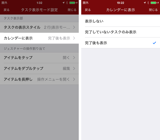 作成したタスクのカレンダーへの表示・非表示の選択ができます。