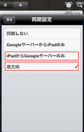 同期設定を「双方向」または「iPadからGoogleサーバーのみ」へ変更する。