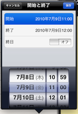 リンク表示 「場所」に住所が登録されている場合、地図へのリンクボタンが表示される。ボタンをタップすると地図ダイアログが開く。 「メモ」に電話番号・メールアドレス・URLが含まれている場合、それぞれをリンク表示。タップするとそれぞれ電話・メール・Safariが起動する。 「編集」ボタンで編集可能 |
